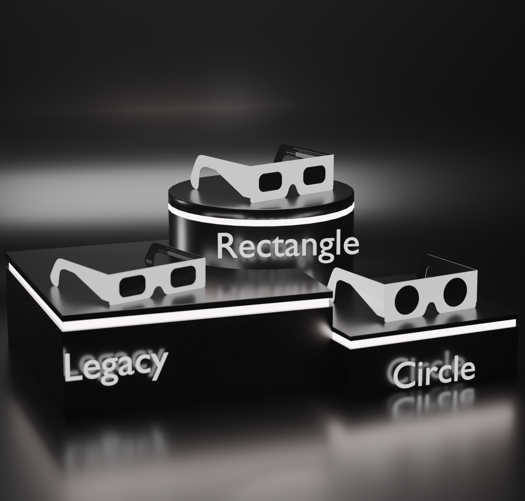 Most eclipse glasses on the market use what we call the Legacy shape. It’s the classic design everyone knows and expects, but because it uses less material, it’s more flexible and can let in a bit more light from the sides.