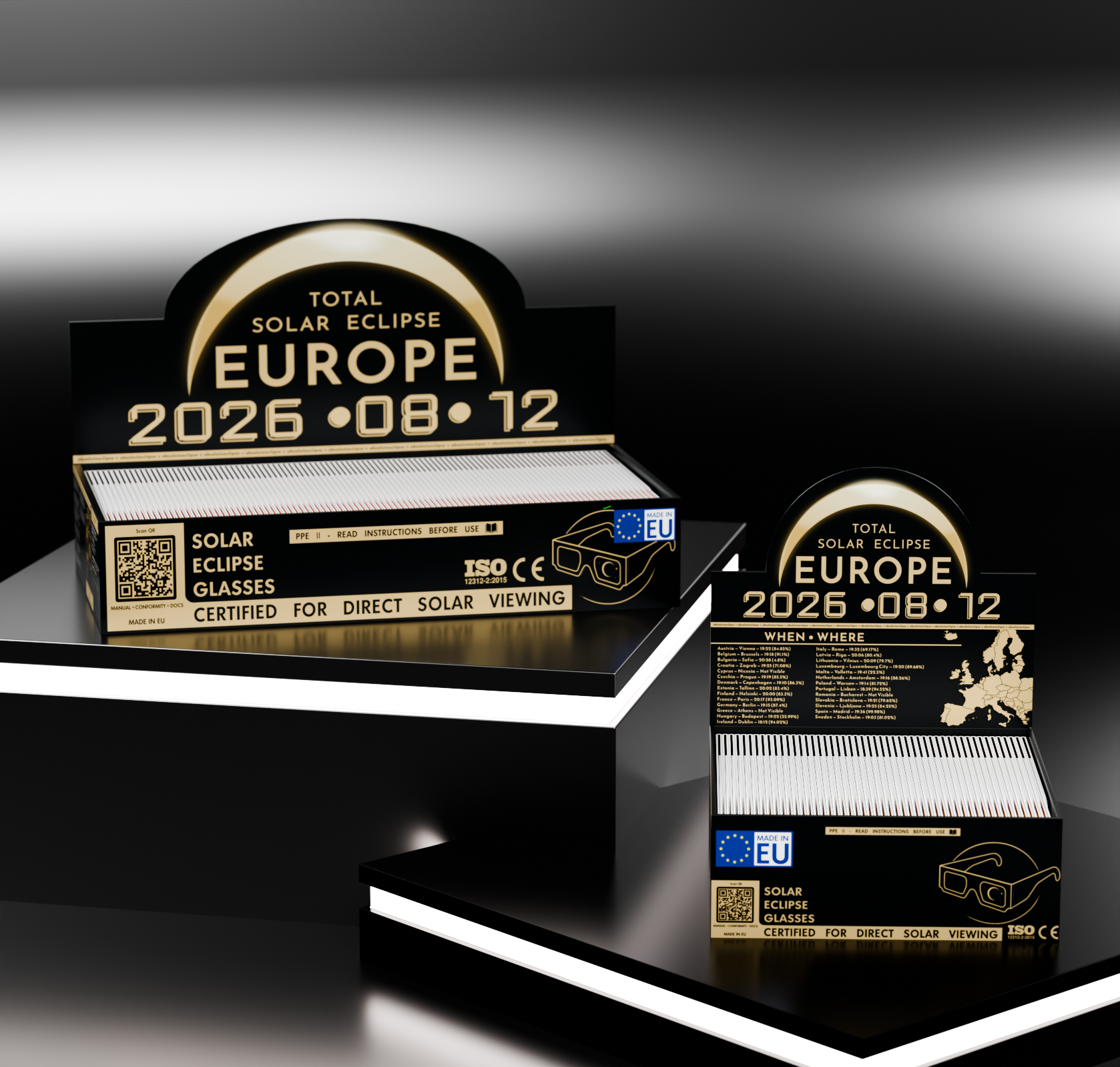 We ship quickly and reliably across all of Europe, which is exactly where the 2026 Total Solar Eclipse will be visible. Whether you need 10,000 units or more than a million, our tiered bulk pricing and free custom branding for qualifying orders make us the preferred wholesale partner for the upcoming event.